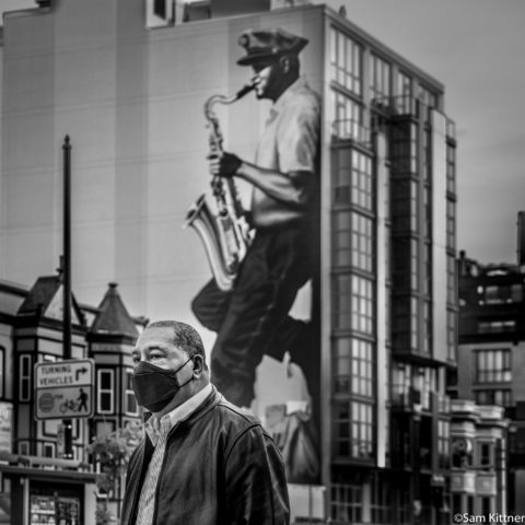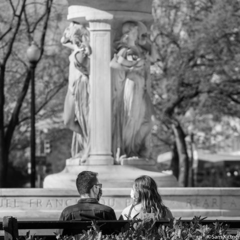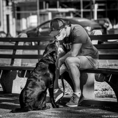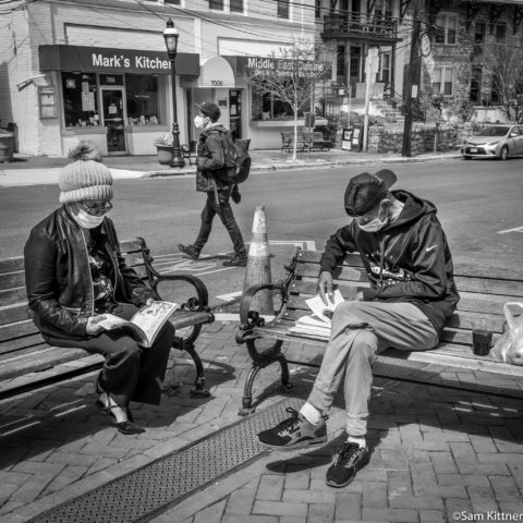 “I think we are all kind of exhausted from the weight of this crisis and looking for strength wherever we can find it,” Kittner says. “It is interesting to me to photograph in these familiar public spaces, capturing the relationship of people to their neighborhoods, and look at the mask wearing as a visual cue that something is amiss in our world at large.”